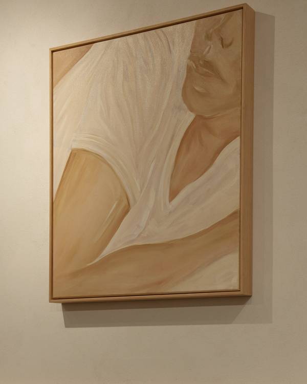 If you think of Caroline Walls’ work as being chapters within a greater story, her most recent paintings are the beginning of an entirely new book — “a sequel” as she puts it. In late 2022 the Melbourne-based visual artist presented Mother Lover, her most personal collection to date. In Caroline’s words, the collection of oil paintings reveals “the quiet unseen moments in my marriage and motherhood that are often overlooked or forgotten” while signalling a move toward a figurative style. Admirers of Caroline’s work will be well-acquainted with her more reductive pieces, and this new painterly direction feels like a perfectly timed departure. “Working with oil paint, a medium I haven’t used in many years, tells a more intimate story,” Caroline explains. “I hope the works are imbued with the emotions that I was feeling in the moments that I am capturing — love, longing, joy and sadness.”