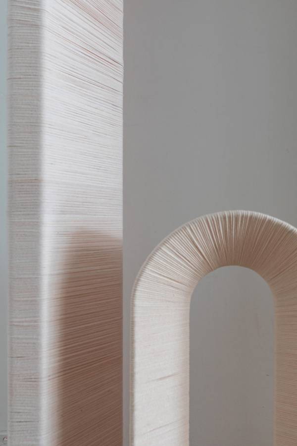 Ivana would be introduced to functional art and textile sculpture years later while completing her Honours project. “The work I did was research-driven and became a sculptural expansion of tangled tubular ‘roots’ that wrapped around a banyan stump. It looked at the ‘knots’ in pieces of Australian history,” Ivana says. She describes her project as shamelessly sculptural but “comfortable to sit on” nonetheless. That her art and design practice would experiment with tactility and textile structures like interlacing, weaving, knitting, knotting and stitching is no surprise. “When I was a kid I’d tie my hair up with six hair bands and lace my shoes as tight as they’d allow,” Ivana says. “Wrapping is a more productive channel that satisfies that control.” Harnessed through her practice, the tension Ivana describes turns into something soothing. “It is very therapeutic. There’s a beautiful balance in building a structure in bendy ply and dyeing and wrapping in fluid textiles. I love the challenge, mess and meticulous process of laminating when I’m making structures as much as I love the rhythm and quiet of wrapping and dyeing with the linen.”