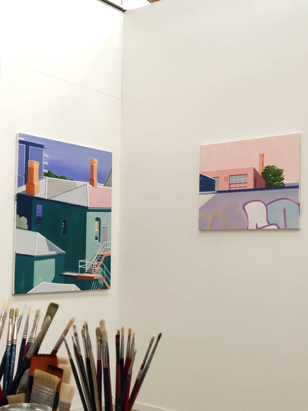 Colour is essential to Justin’s work, and he uses it “to explore the subtleties in atmosphere and light”. In the studio, Justin says he’s continuing to experiment with colour, “but also with layers and texture to create a certain depth to make the painting sing”. Though his artworks are representations of very real landscapes, they can be described as otherworldly and enigmatic. “There are a rainbow of emotions that go into my artworks, but I do strive to create a quality of stillness and contemplation in them with a sense of happiness and excitement,” Justin says. “In the past I've always been inspired by far away places and holidays and trips abroad, but currently and over the past couple of years I’ve been inspired by more local landscapes and places, urban scenes and old buildings.” Right now, he adds, “I am in preparation for my next solo show, inspired by, and wanting to make works featuring Paddington in Sydney.”