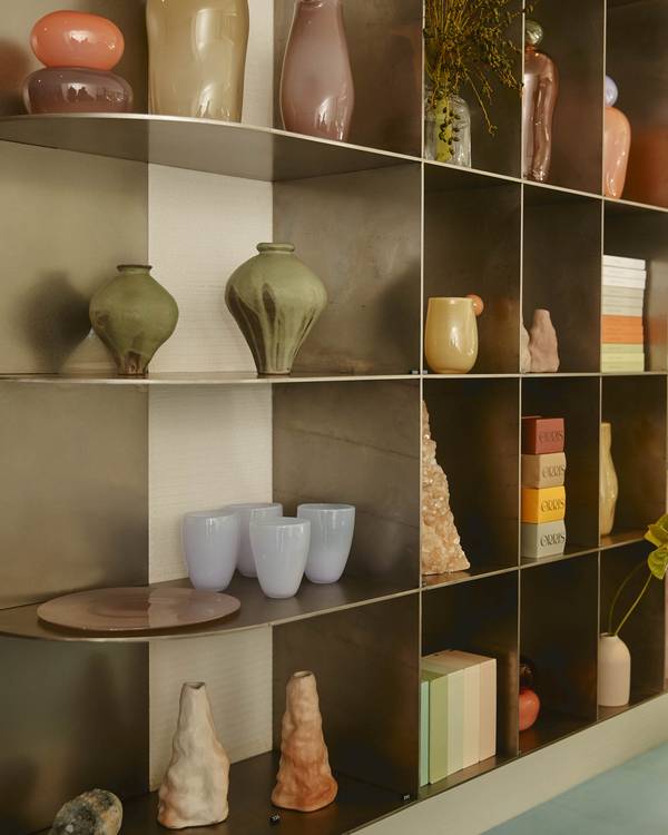 Edward worked “extremely closely” with designer Alexandra Holman of Akin Atelier on the interiors, which are infused with layers of texture, colour and a sense of optimism. “It was the most amazing experience - collaborative, inspiring and ultimately fun!” he says of the process. “Double Bay was about setting the tone and vision for Poho over the next 10 years, a statement about who we are and where we’re heading.” Edward envisions Poho as a melting pot of bright creativity and talent, which is reflected in the design pieces and products stocked in the new store. Visitors are greeted by a work by artist Gemma Smith, and the shelves are lined with candy-like glass objects by Helle Mardahl - Poho is the Danish designer’s first Australian stockist. Edward also points out the scents by Sigil, a queer-owned and run brand - “I am currently wearing Solutio” - as well as ceramics by artist Tanika Jellis, who is a dear friend and a colleague at Poho.