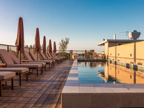 The Swell is a boutique stay inspired by the motorside motels of holidays past and designed for the age of self care and social media. A retro oasis in the middle of town, The Swell has been decked out in sunset tones, rich textures and an eclectic mix of contemporary and vintage furnishings that recalls the photography of Slim Aarons. The ozone pool is bordered by a bar where you can borrow a book and order a health elixir alongside a cocktail or spritz, and there’s an infrared sauna and ice bath for guests to unwind in at the end of the day.